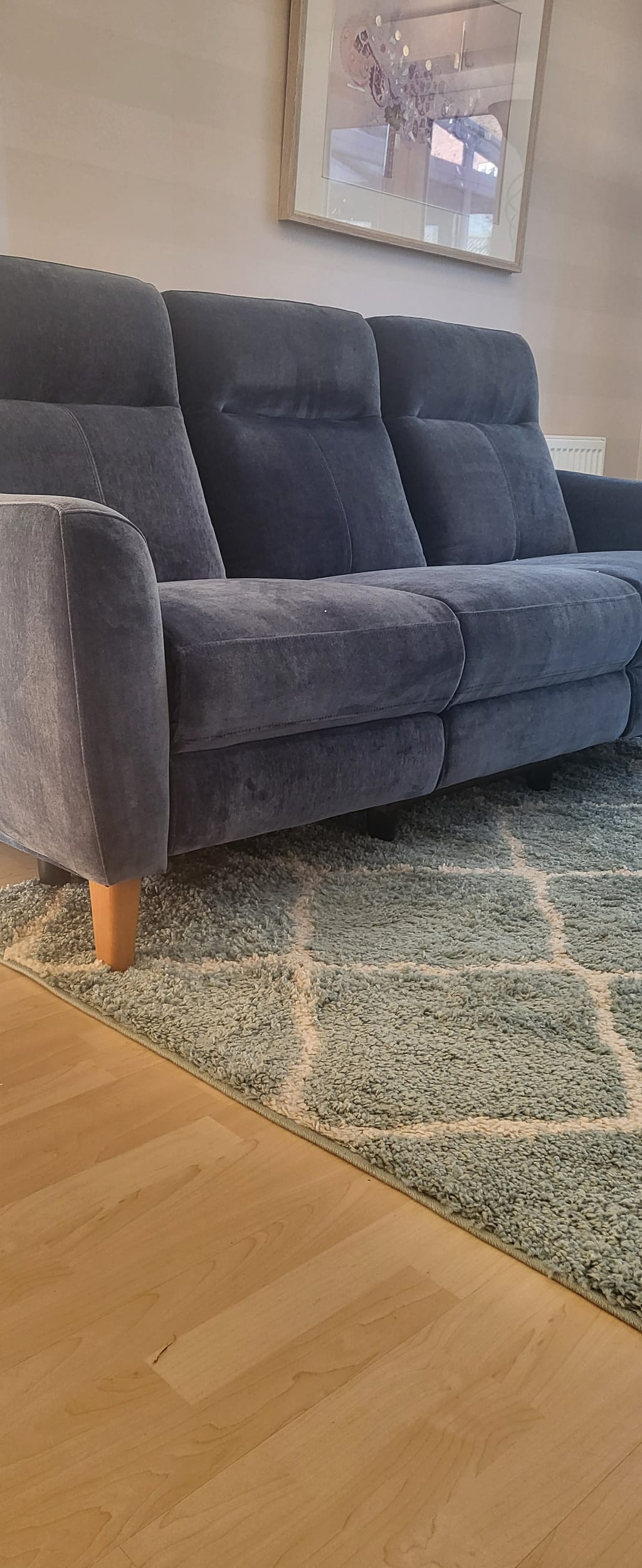Our Dylan 3-seater recliner sofa, shown here in Amigo navy, will add a touch of smart, modern design to your living room.