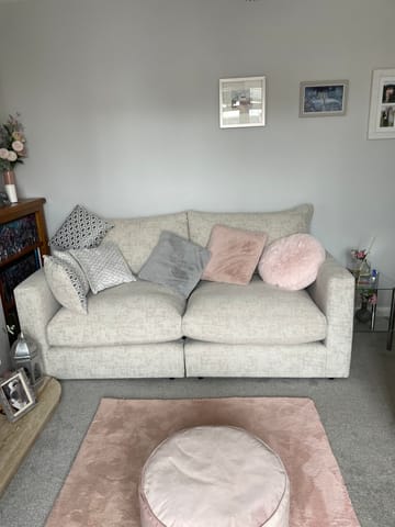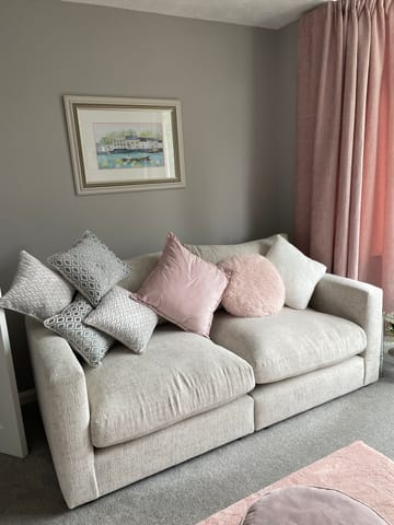 Beautiful sofa and fits perfect because it’s modular. Lovely colour and soooo comfy. OFL are great, better than all the other sofa places. Especially their after sales. I would highly recommend. Winner for me every time. Photos are with my own cushions, apart from the small pattered ones. We got 8 of those and 4 larger rust coloured ones (not in pic)