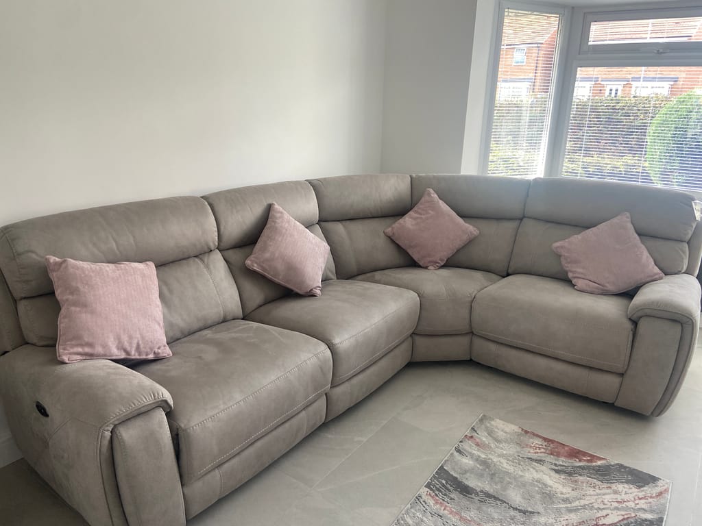 Leo Left Hand Corner Recliner Sofa in Billy Joe Dove Grey Fabric