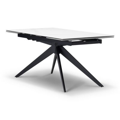 Trento 5ft White Ceramic Extendable Dining Table + 6 Cross Back Natural Solid Oak Chair with Plain Charcoal Fabric Seat