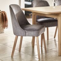Knightsbridge Natural Solid Oak 4ft Round Extending Dining Table + 2 Bette Upholstered Chair with Oak Legs in Heritage Granite Velvet