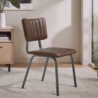 Durham Natural Oak Fixed Dining Table 120cm + 2 Mason Chair Vintage Brown Leather-Look fabric with Black Legs
