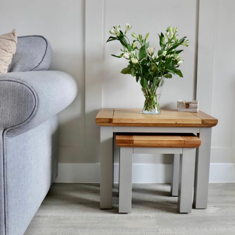 If you have an older set of nesting tables, you can easily give them a fresh look with a bit of DIY. Depending on the wood finish, simply sanding them down and applying a new coat of paint or varnish can revitalise their appearance. Alternatively, we offer a variety of painted styles and finishes, saving you the hassle of doing it yourself.