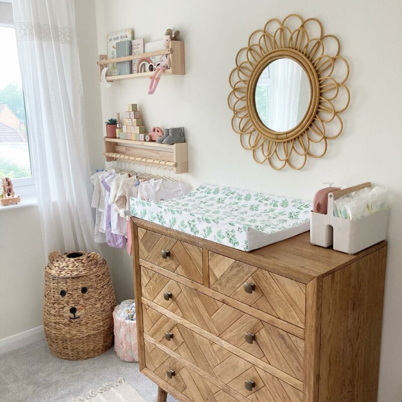 For all the toys, books, and clothes, labelled crates and wicker baskets help to categorise. In turn, this makes it easier for children to find things and keep their room clean (or let’s face it, help you keep it tidy!).