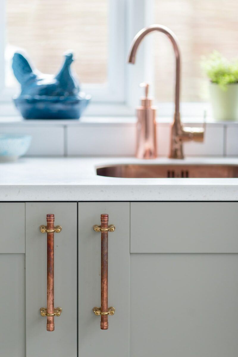 Focus on small changes that make a big impact. Swap out old hardware on cabinets and doors for something more modern.