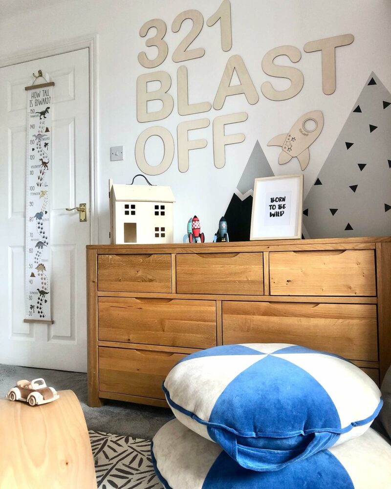 For all the toys, books, and clothes, labelled crates and wicker baskets help to categorise. In turn, this makes it easier for children to find things and keep their room clean (or let’s face it, help you keep it tidy!).